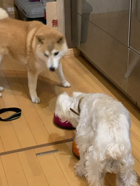 紡ぎの日 じん 2020.10.28 昨日は小春ママと紡ぎの日。(^^) わんこ達はまた一緒。 そして、早々にごはん。 これで、この子達も大人しく寝るだろう。(o^^o) と思ったら。 紡いでたら足元に、視界に入るようにじんが。 これが始まるとしつこいんだよなーこの子は。(^^;) 結局じんは本懐をとげ、 紡いでいる最中ずっと私の膝に乗ってました。 だから、重いんだって! 一人でしてても紡ぎは楽しいですが、 一緒だとおしゃべりもしながらで、かなり楽しい!(^^) しばらく紡ぎの会は続きます。 やったね!(^O^)