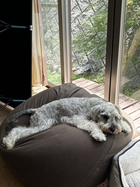 帰ってきて、定位置で休むじん。