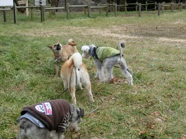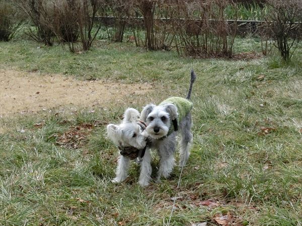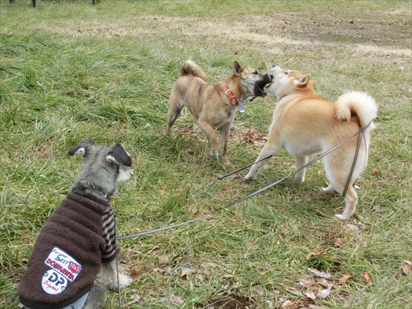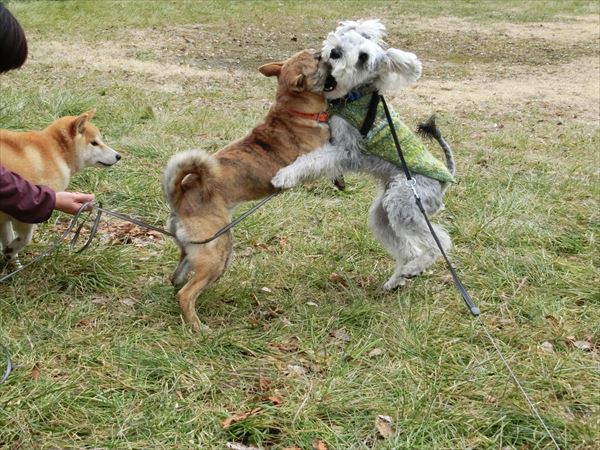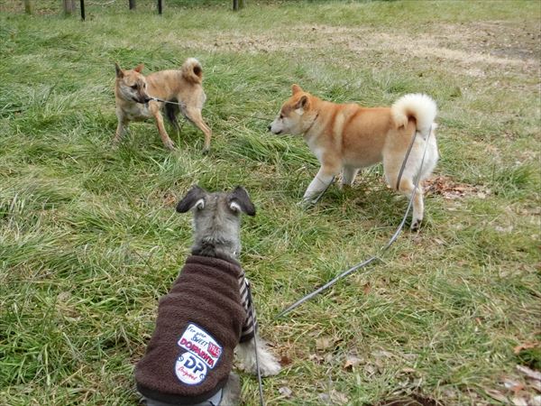 その間、ロングリードをずっと握りしめている人間二人。