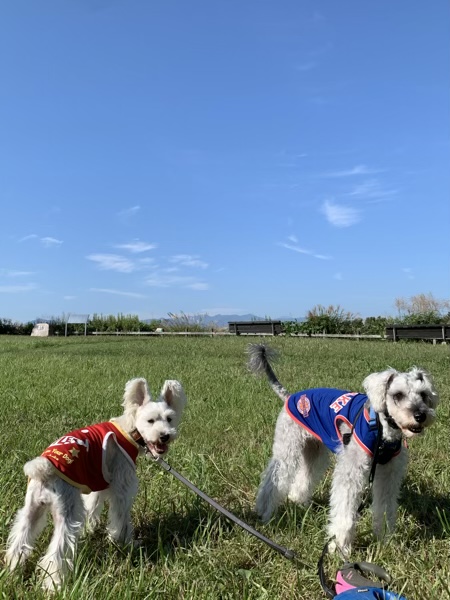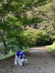 緑地 じん 2020.09.30 朝、公園にお散歩に行ったら、びっくり! イベントがあるようで、駐車場が使えませんでした。 なので、ちょっと足を伸ばして緑地へ。(^^) 秋晴れの気持ちいい日です。 歩くのが早いななとじん。 それでも1時間ぐらいはかかるかな?と思ってたら、 なんと40分で一周。 はや! せっかく来たのに、早すぎるよねぇ。 でも。 ちょっとは疲れたみたいなので、ま、いいか。(^^)