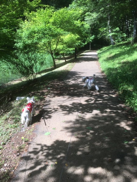 緑地 じん 2018.05.16 久しぶりの緑地です。 日差しが夏みたいです。 いつもはこんな風に、ずっと横を歩いているななも。 楽しいのか、ぴょんぴょん前に走り出ていました。 最初はにっこり顔のじんも。 と、はしゃぎ倒していました。 お陰でジェルネイルで固めた爪も、 リードを吹っ飛ばした勢いで、割られて吹っ飛びました。 痛い。 まったく、どんな勢いよ、(。-_-。) ま、楽しかったのなら、よしとしますが…。 そして久しぶりだからか、なぜか途中迷子に。(・・?) トリ頭? もうちょっと行くとします。σ(^_^;)