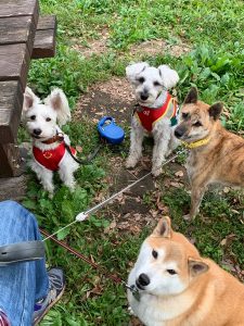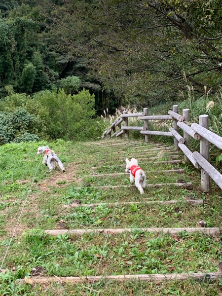 緑地 じん 2018.10.23 久しぶりに緑地へ。 今日も小春と茶々と一緒です。 夏の間草ぼうぼうだった階段も、 階段が見えるようになりました。 涼しさも丁度よく、 じんはまたもや大はしゃぎ。 お陰で種男に…。 秋だねぇ。(^_^)a そしてはしゃいだ二人は、 帰り、よく寝てました。 しばらくこういう涼しさが続くといいですね。