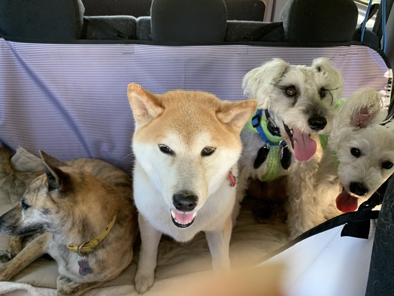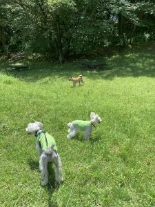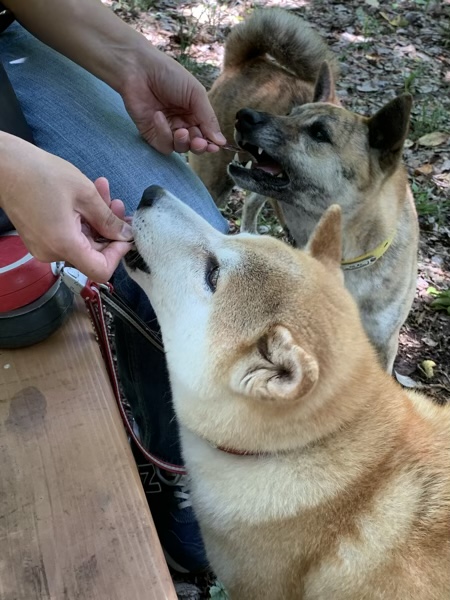 緑地 じん 2020.07.02 小春ママと一緒に、久しぶりの緑地へ! 暑いけど、風が吹いて緑地は爽やか。 楽しいね! おやつ休憩も。 しっかり水分も補給しないとね! そんなお散歩のあとは。 みんないいお顔? 久しぶりの緑地、楽しかったです。(o^^o)