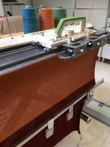 編み機使い始め モノづくり 2018.07.21 修理した編み機、やっと出動! タリフの糸を使って、平編み量産中。 壮大な計画の一部なんだけど、上手くいくかな?? あの子達は今トリミング中。 綺麗になった子達と、今晩から車中泊。(^^) それまでに出来るだけ編んでおかないと!
