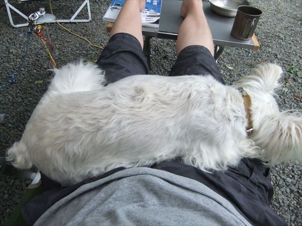 旦那さんの足の間に入り、二人でおねんね。(^^;)