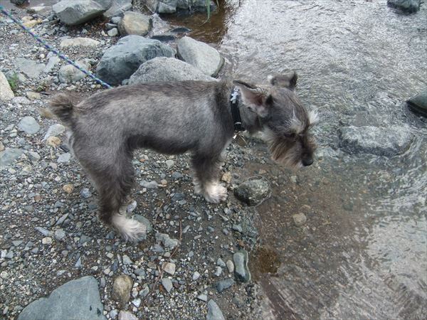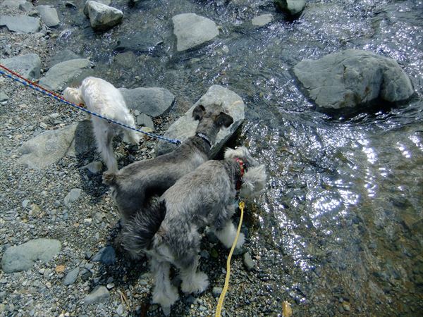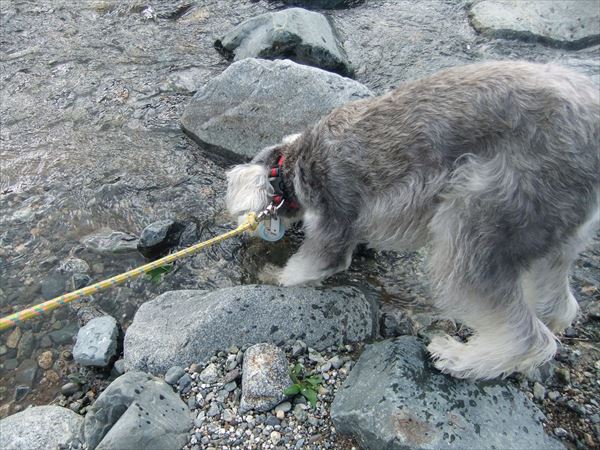 入れ!と、じんを水辺に押しやったところ、すぐ出てきました。(^^;)