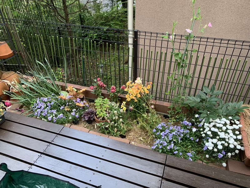 花壇 じん 2021.05.14 早いですが、そろそろ春のお花が暴れ始めました。 まだ咲いているから可愛そう…とは思うのですが、 今のうちに花壇の入れ替えをします。 夏に向けてのお花達。 タネも揃え始めたので、頑張ってみます。(^^) 一仕事終え、日陰でもう一仕事中。 の側で、日向ぼっこ。 こちらは最近の定位置。 あ。 横着しながら、君も日向ぼっこか。(^^;) 夏の花壇も楽しみです! ただその前に蚊との戦いが待ってますが。