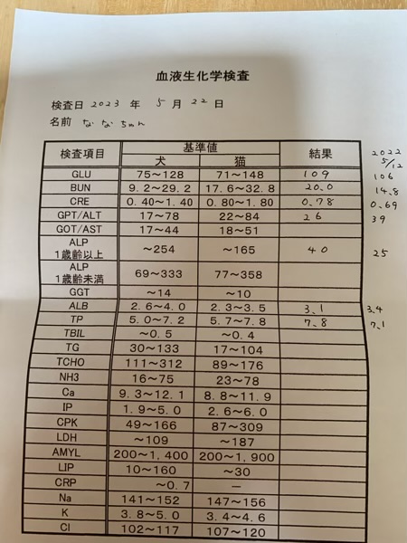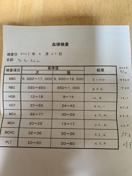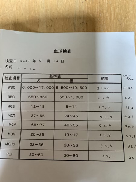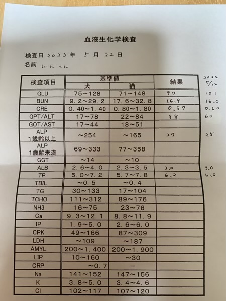 フィラリアの検査ついでに、今年も血液検査をして来ました。