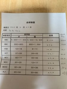 じんのWBCが、少し低いのですが、元々あまり高くない子なので、