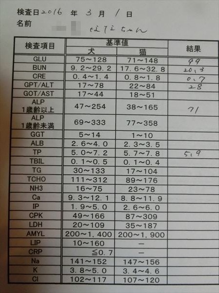 今この値が出ていても、この子は元気だという事が大切だと言われました。
