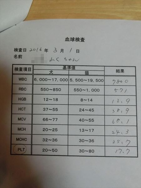 ふくの手術の時に、ななとじんの血液検査もしてもらいました。
