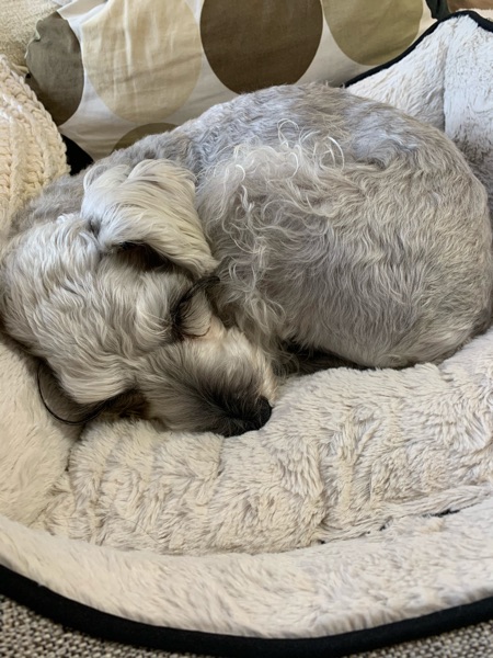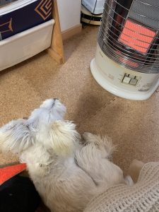 じんの居ぬ間に、ストーブ犬に。