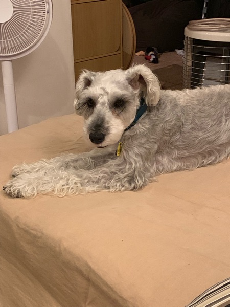 で、目が合うとこの姿勢で尻尾を振ってきました。
