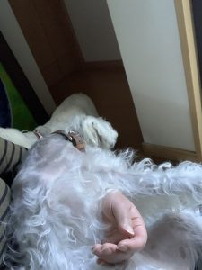 足拭き じん 2021.11.11 お散歩帰りは、2人とも足を拭かれます。 抱っこされて、ごしごし。 こちらも抱っこ。 なのですが、腕に思いっきりもたれかかられます。 どこがなにか、わからないですよね。(^^;) 今までは散歩帰りのゼーゼー言ってるじんの息も熱く、 体温も上がってるので、 足を拭くだけで汗だくでしたが、 最近は程よくぬくい感じです。 そろそろ冬だなぁ〜と、こんなところに感じます。(^^)