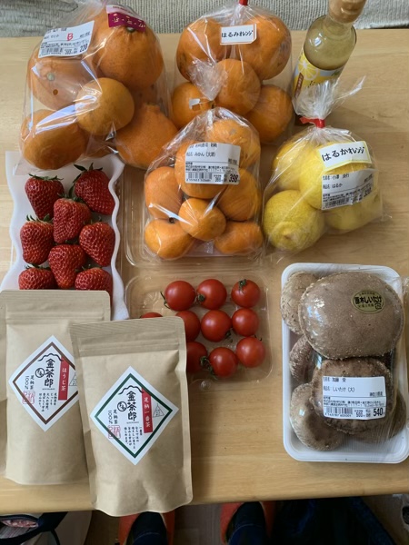 紅ほっぺに、原木椎茸、足柄茶の一番茶とほうじ茶。