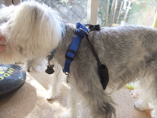 ふくは斜めがけで、お散歩できるようになりました。(^^)