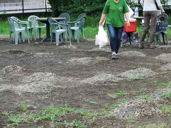 ランには、既にかき集められた砂利の山ができていました。