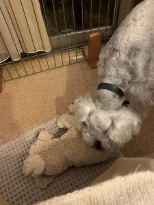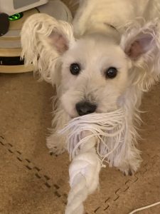雨の日 じん 2020.07.09 雨が続きますね。 合間を縫ってお散歩に行くものの、やっぱり暇なようで。 「遊んで」 ロープを持ってこられたら、しょうがないなぁ。(^^) 「僕も」 そして遊んだ後は、寝ました。 え? クッション2段?? …。 ぜいたく〜。(^^;)