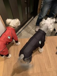 試しにレインコートを着せて、お散歩に行くことにしました。