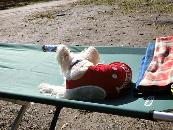 設営中、ずっとついて歩いています。