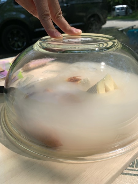 ボール型のに煙が溜まり、燻製ができます!