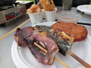 どーんと一匹、串に刺さったサバなど、かなりの迫力があるものが多々。