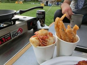 既に前日、海鮮BBQの後に焚き火台を洗ってしまったので、