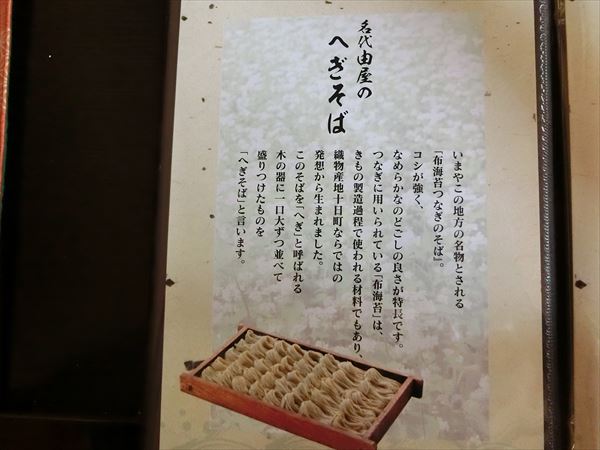 へぎそばの香りと、魚の香りで、独特な感じがしました。