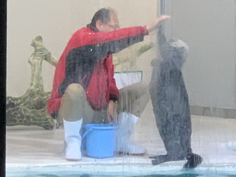 中でも見続けたのは、ラッコの餌やり。