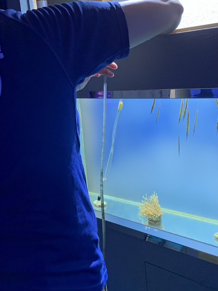 お姉さんが水槽の掃除中。