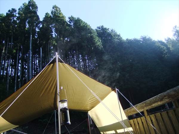 タープから、湯気が出ています。(゜.゜)