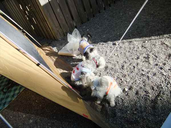 犬たちも、わずかな日向で、日向ぼっこです。