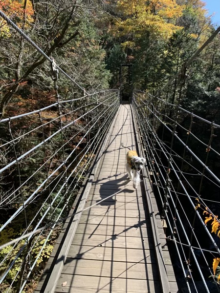 橋の上に人は3人まで!という、揺れる吊り橋。
