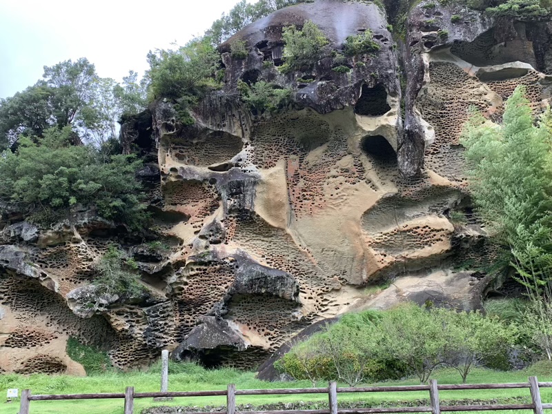 天然の岩肌なのですが、名の通り虫食いのようです。