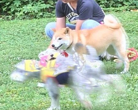 週末、またランへ。草刈りがしてあり、こんな模様が出来ていました。(^^)今日はみんなが既に来ていて、そんな中で、ななはボール遊びを始めました。それを見つめる、ボクサーのジェシー。ピコピコ鳴るボールが大好きだそうです。「…」ななシェルターへ。...