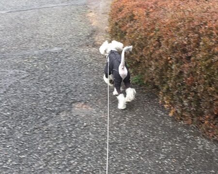 我が家は雨の日にはお散歩に行きません。でも今日は特別!何も着ないでいいし、汚し放題でいいからね〜。(^^)その理由は。今日はトリミング&シャンプーだからです。(^^)vびっしょびしょのどっろどろで、トリマーのSさんのところへ到着。さすがに汚...
