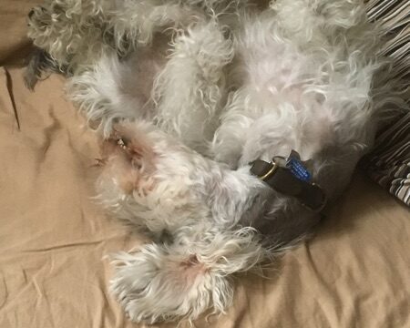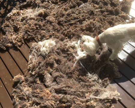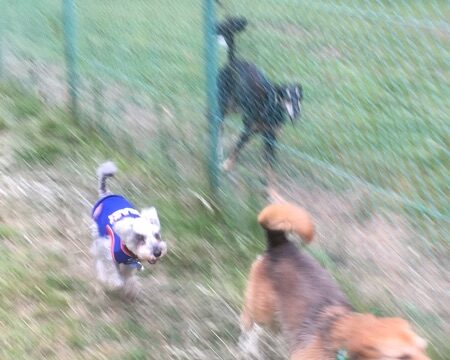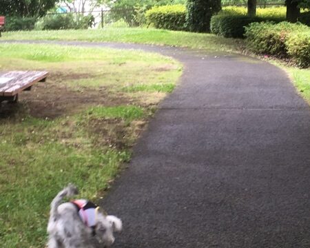 雨上がりの公園。嗅ぎ嗅ぎ。嗅ぎ嗅ぎ。…。そこまで潜るなっ!(>_<)