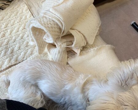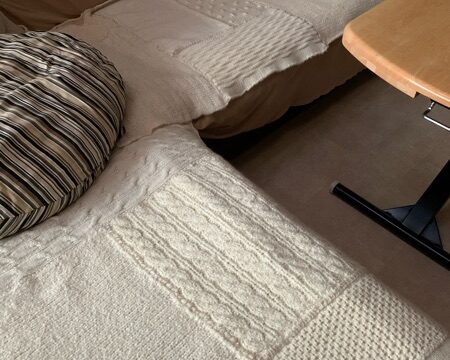 ラグ、完成しました!(^^)ただ。ななの保護色。(^^;)次はこの毛布だな。でも、色数が増えたので、なんかごちゃごちゃして見えます。毛布にする予定の編み地はカラフルなので、悩みます。どうするかなぁ…。