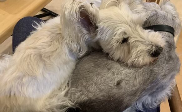 サマーセーターを編んでいたら、糸が足らなくなり、急遽追加分を紡いでます。その横で。二人は大人しく寝ています。じんにはくっつかれてますが。うちの2人は物分かりがいいなぁ。いや、大人しくしてないと怖い!って思ってるのかな?(^^:)