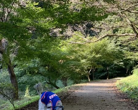 朝、公園にお散歩に行ったら、びっくり!イベントがあるようで、駐車場が使えませんでした。なので、ちょっと足を伸ばして緑地へ。(^^)秋晴れの気持ちいい日です。歩くのが早いななとじん。それでも1時間ぐらいはかかるかな?と思ってたら、なんと40分...