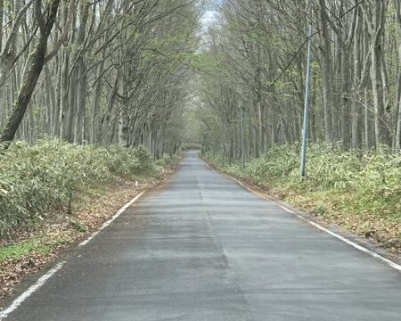 雨も上がってきました。これは…。と、急遽目的地を奥入瀬渓流にして、GO!と思ったら、5月15日まで通行止めという道をナビされてショック!引き返して他のルートから行きます。途中。新緑が出たて!って感じできれいです。が、今度もとんでもないダート...