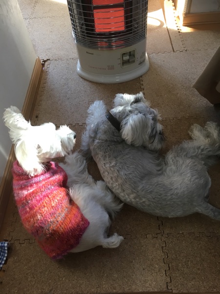 以前と同じように、二人でストーブの前。