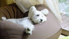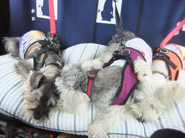 犬たちも車で爆睡です。