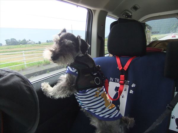 ふくも、車の中で、わくわくです。