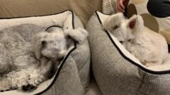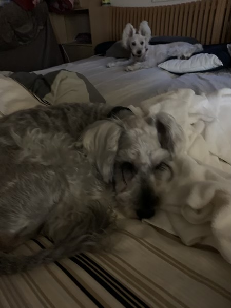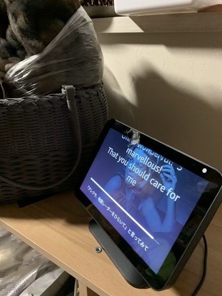 Alexa じん 2020.09.11 我が家にもAlexaがやってきました。 正式にはecho Show 8です。 昨日模様替えをして、 今度の作業場には、音源がなにもないんです。 ということで、買ってみました。(^^) これが思いもかけず快適! 紡いでて手が離せなくても、 気分によって、どんどん音楽を変えて聴ける! ま、その分席から立つことが減るのは、 体にはよくないですが。(^^;) と、快適に作業を進めてると。 近くのベッドから2人が見てました。 今度の作業場は、くっつきにくいもんね。 ごめんね。(^^;)