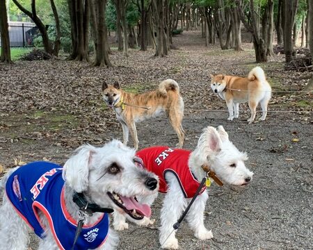 久しぶりに、小春&茶々とお散歩です。(^^)今年初かな?山は下がドロドロなので、よく行くお散歩コースへ。わさわさ。みんなでお散歩だと、おもいおもいの動き。ま、しょうがないけど。(。-_-。)で、いつもの記念撮影。青空が気持ちいいお散歩でした...