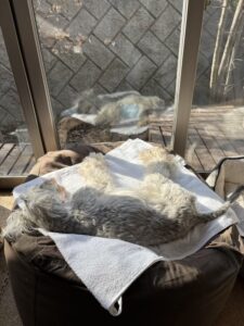 じんがやって来た当初は1人の時間を邪魔されて嫌がってたのに、少し歳をとって心細くなって来たのか、最近は寄り添って寝たり枕にしたりと、結構くっついていました。