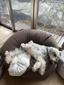 午後中焦って作業している私の横で、2人はのんびりお昼寝です。